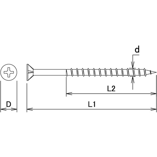 ●ねじ山の間隔が長く(粗目)ねじの溝が深い、電動工具を使って作業するもっとも一般的な木工用ビスです。