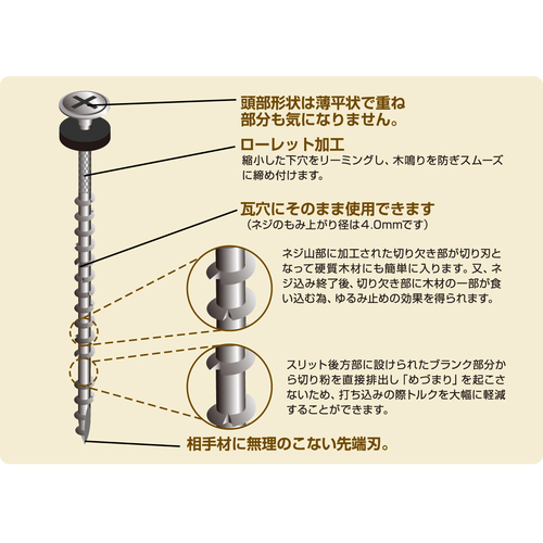 ●板金、金属屋根、瓦まで使用できる屋根専用ビスです。