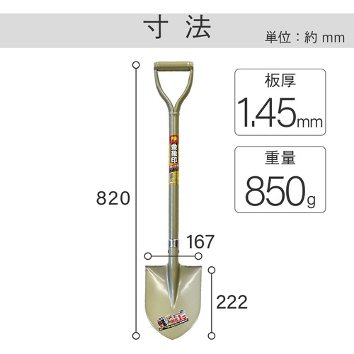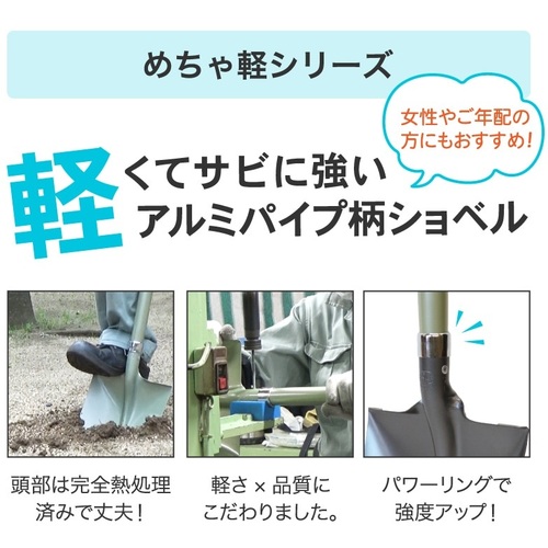 ●柄部にアルミパイプ柄を採用した日本製軽量ショベルです。