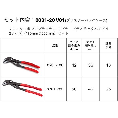 KNIPEX ウォーターポンププライヤー ”コブラ2点セット” ソフトプラスチックハンドル 003120V01