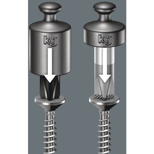 ●マグネットの力を使わず、ネジを落とさず作業できるようにレーザーチップ加工がされています。