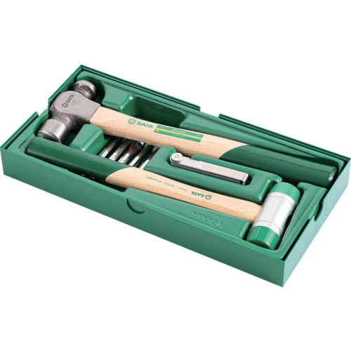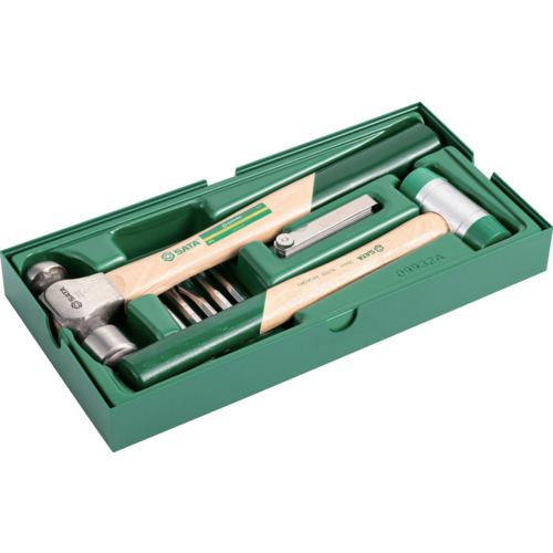 ●センターポンチ(先端径×全長)4×120mm●テーパーピンポンチ(先端径×全長)3x120mm、ピンポンチ(先端径×全長)4x150mm、、エボシタガネ(刃幅×全長)5x129mm、平タガネ(刃幅×全長)12x129mm●32点シクネスゲージ(0.02,0.03,0.04,0.05,0.06,0.07,0.08,0.09,0.10,0.13,0.15,0.18,0.20,0.23,0.25,0.28,0.30,0.33,0.38,0.40,0.45,0.50,0.55,0.60,0.63,0.65,0.70,0.75,0.80,0.85,0.90,1.00mm)●ボールピンハンマー 680g 、プラスチックハンマー 310g●ツールケース