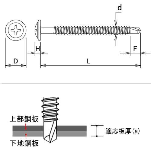 ●適応板厚(a):1.6~3.2mm厚まで下穴なしで鉄板にねじ込めます。