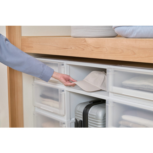 ●半透明で、中身がわかる引出しです。