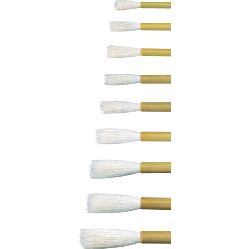 ●気軽に使える経済的な普及品として好評の、マルテー並白文字筆。柔軟でまとまりの良い白羊毛を使用した書き味の良い筆です。通称「ペンキ筆」、「さばき筆」とも呼ばれています。