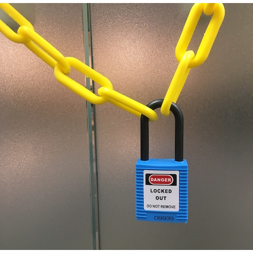 セーフラン ロックアウト用絶縁パドロック 青 吊38mmタイプ 14673-1