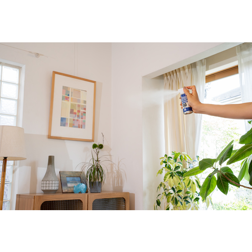 ●1プッシュするだけで薬剤が部屋に広がり、飛び回るコバエを駆除します。