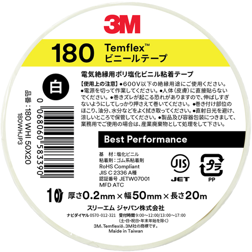 3M Temflex(テムフレックス) ビニールテープ 180 ホワイト 50mm x 20m 180 WHI 50X20