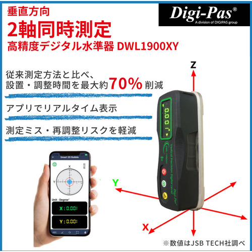 JSBTECH Digi-pas 垂直面・垂直方向2軸同時測定高性能デジタル水準器 DWL1900XY 2-01901-99