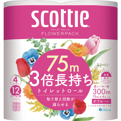 クレシア トイレットペーパー スコッティフラワーパック3倍長持ち4ロールダブル(22767/22775) 22775