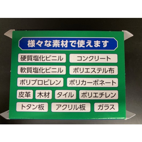 ●硬質・軟質塩化ビニル、ポリエチレン、ポリプロピレン、ポリカーボネート、ポリエステル布、アクリル板、木材、コンクリート、タイル、皮革、ガラス、トタン板などの補修に使えます。