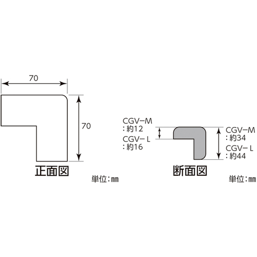 緑十字 コーナー用ガードクッション V型タイプ イエロー 70×70×44mm 裏テープ付 246362