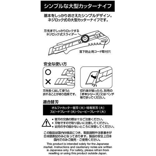 ●シンプルなデザインのネジロック式大型カッターです。