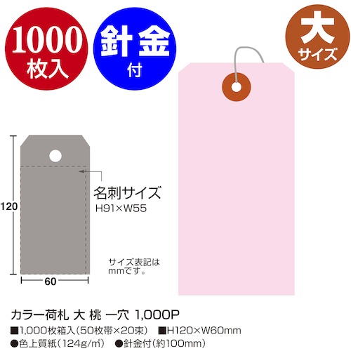 ササガワ カラー荷札 大 桃 一穴 25-142