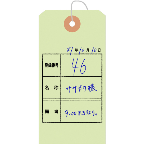 ササガワ カラー荷札 大 黄緑 一穴 25-145