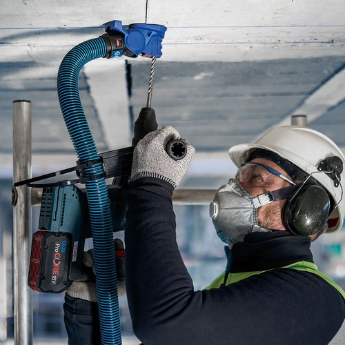 ●高い集じん効率で作業者の健康を守ります(アダプター未使用時に比べ粉塵量約1/25)。