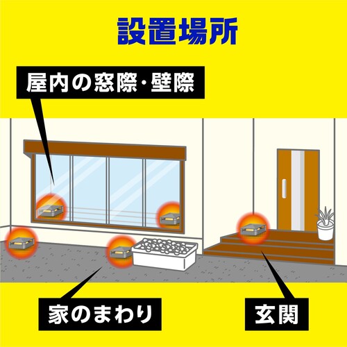 ●食べさせて駆除するので、屋外側に置けば屋内への侵入を防ぎ、屋内側に置けば侵入してきたムカデを駆除できます。