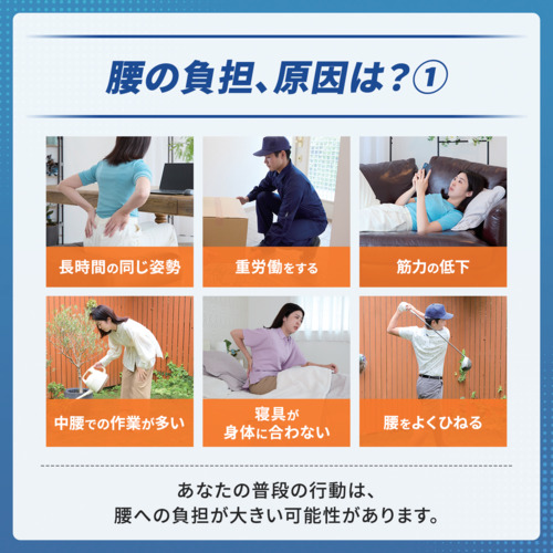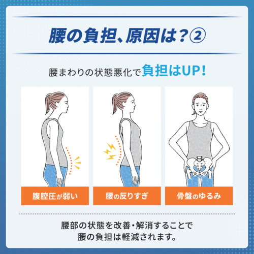 ●背中側だけでなく腹部側からもしかりホールドし、腰への負担を軽減します。