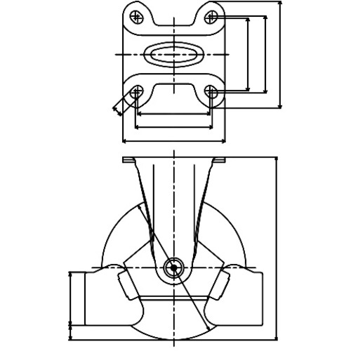 ●車輪への足の巻き込み事故を予防するフットガード付キャスターです。