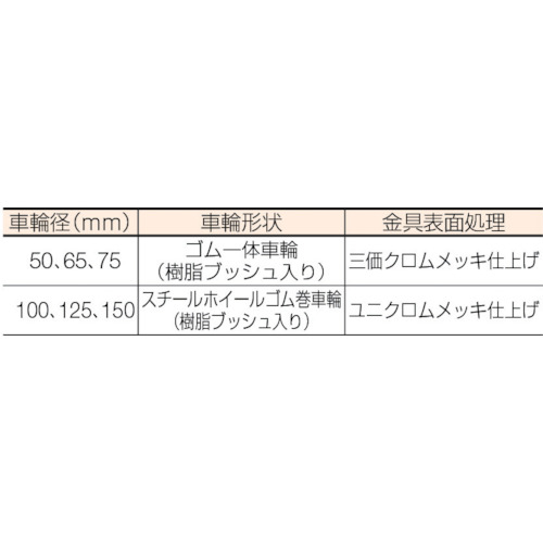 ●車輪形状:ゴム一体車輪(樹脂ブッシュ入)