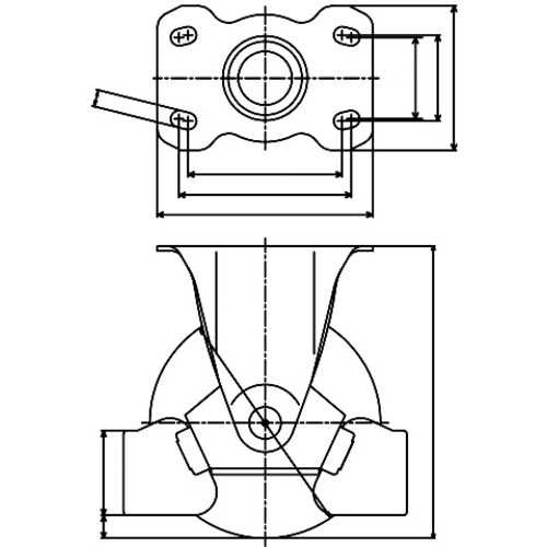 ●車輪への足の巻き込み事故を予防するフットガード付キャスターです。