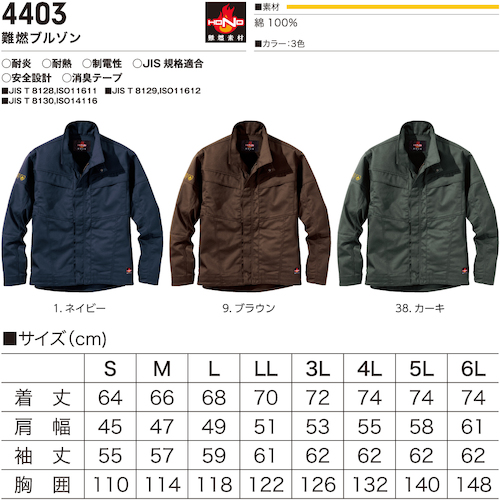●必ず当社JIS規格取得商品4404難燃カーゴと同時に着用して下さい。