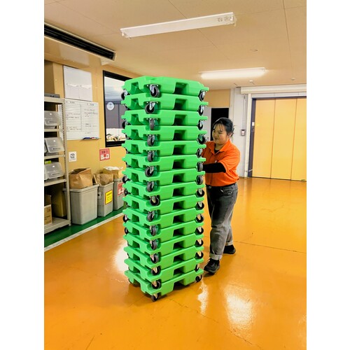 ●積み重ねたまま移動も可能な平台車です。
