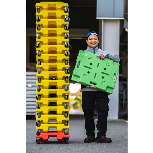 ●積み重ねたまま移動も可能な平台車です。