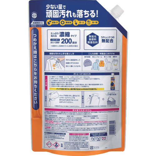 Kao 液体ビック 作業着・ユニフォーム洗い つめかえ用2kg 業務用 457301