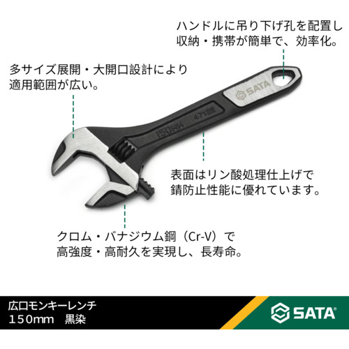 SATA 広口モンキーレンチ150mm 黒染 47122