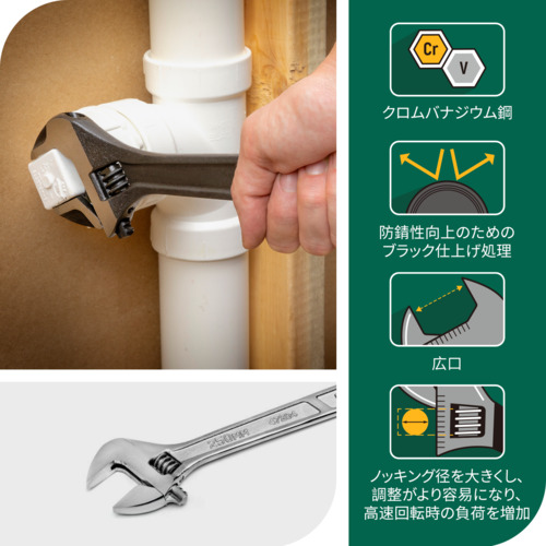 9. SATA 広口モンキーレンチ150mm 黒染 47122