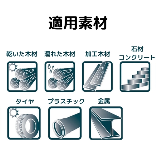 ●木材、金属、石材、プラスチック、コンクリート、プラスチック、タイヤなどのマーキング可能です。