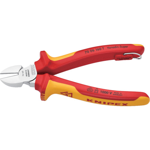 KNIPEX 絶縁電工ニッパー 1000V絶縁 落下防止 160mm 7006-160TBK
