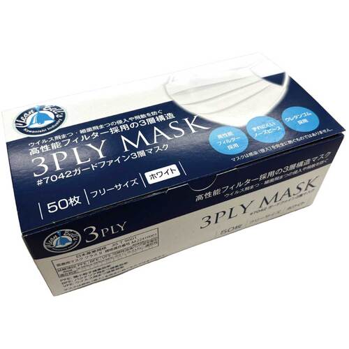 川西 ガードファイン3層マスク ホワイト 7042W