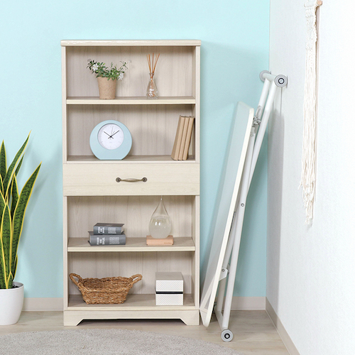 ●片方の脚にキャスターをつけることでスムーズに昇降が可能となっております。