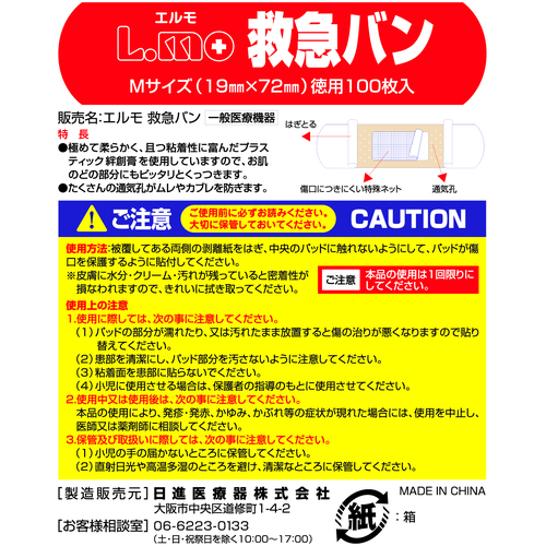 ニッシン 救急絆創膏 エルモ救急バンMサイズ100枚入 781526