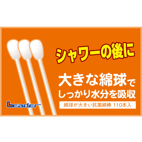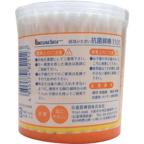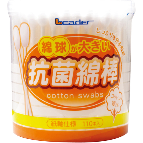 ニッシン 綿棒 リーダー綿球が大きい抗菌綿棒110本入 782112