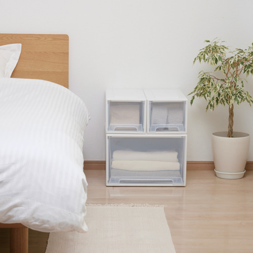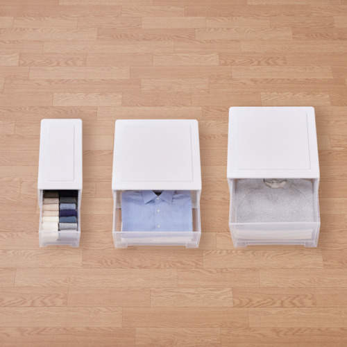 ●半透明で、中身がわかる引き出しです。