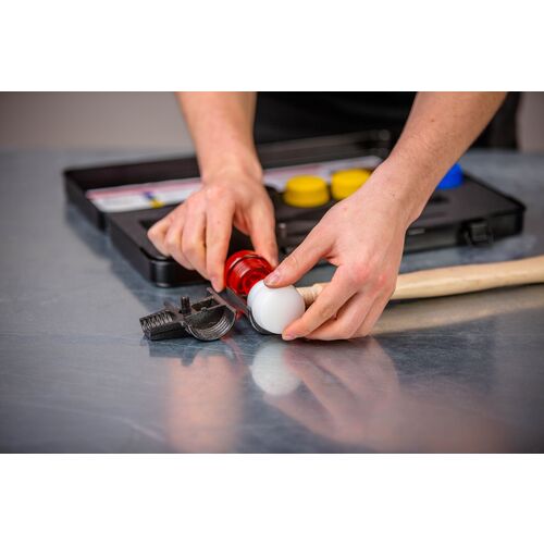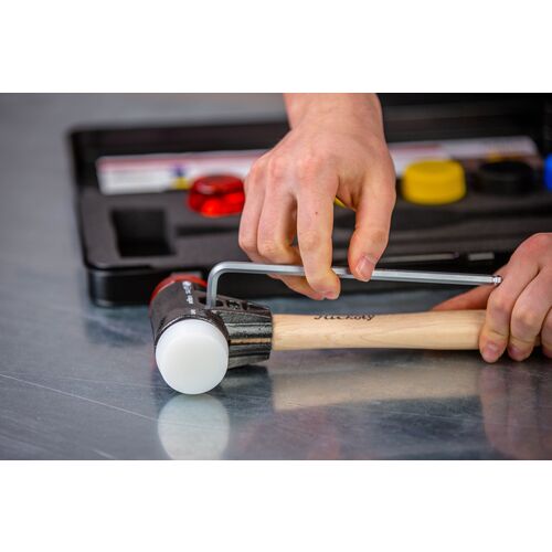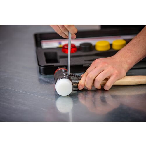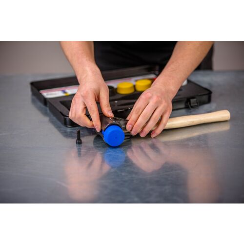 ●様々なワーク材質に応じて対応可能な替えヘッドとハンマーが専用ケースに入った便利なセットです。