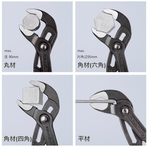 ●少ない力でパイプやナットを確実につかむ平行四辺形のアゴ形状です。