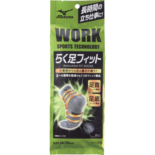 ミズノ 靴下 らく足フィット グレー 24~26cm 871-850-25-60