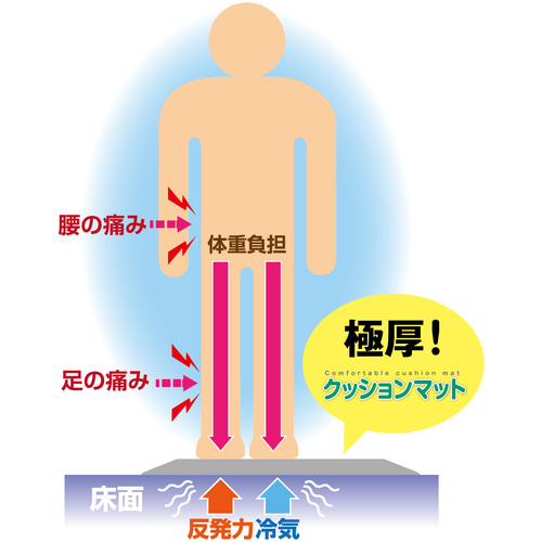●厚さ15mmのクッション性のマットが足腰の痛みを軽減し、職場環境改善に最適です。