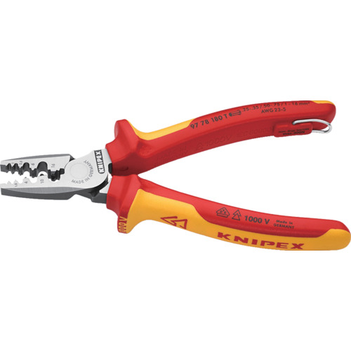 KNIPEX エンドスリーブ用絶縁圧着ペンチ 1000V絶縁 落下防止 9778-180TBK