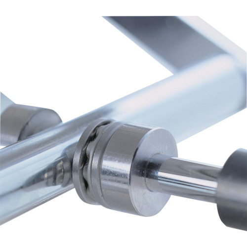 ●ハンドル軸にスラストベアリングを使用した軽いハンドル操作でスムーズな昇降移動を繰り返し行う事ができ横ゆれの少ない、安定した昇降が得られる検査、実験向きラボジャッキです。