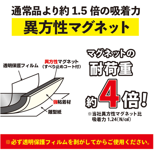 ●ご使用時にはマグネットシートの磁力面にはってある「透明保護フィルム」を必ず剥がしてからご使用下さい。