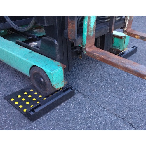 ●マットに乗り入れることによりフォークリフトの自重で製品が固定されます。