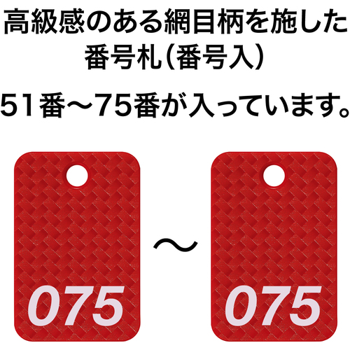 9. OP 番号札 四角 大 番号入り51~75 赤 (25枚入) BF-82-RD