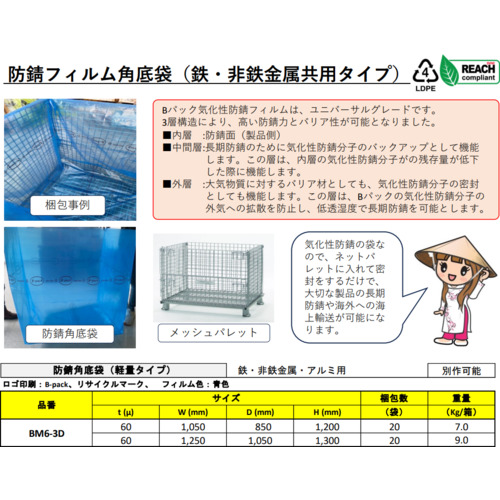 KBIS まとめ買い Bpack 防錆角底袋 幅1050X奥行850X高さ1200X厚み0.06mm 20枚(鉄・非鉄金属共用) BM6-3D1058512020P