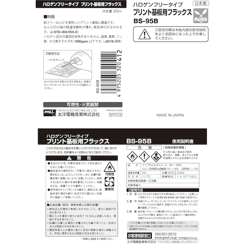 グット ハロゲンフリープリント基板用フラックス 20ml BS-95B