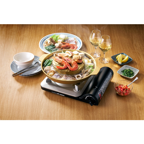 ●イワタニのカセットこんろのごとくにはまる設計で、プレートがずれにくく、調理をより安全に行うことができます。